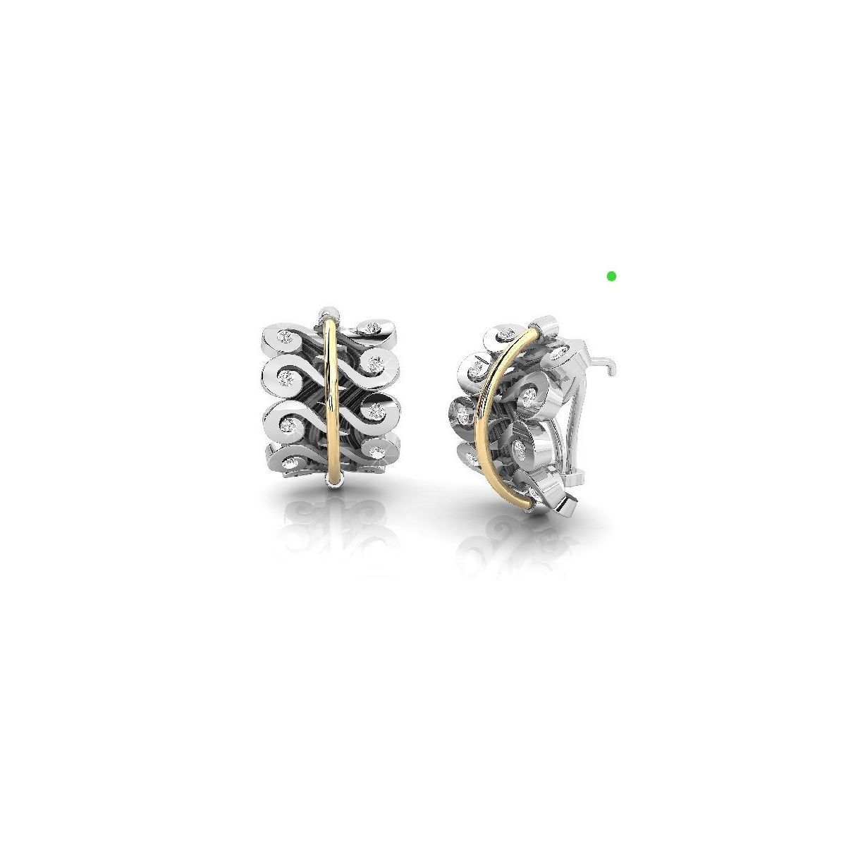 Arracades Bohemme en plata de llei amb bany daurat, disseny d’espirals entrellaçades adornades amb diamants, topaci blanc i cristalls que capturen la llum amb elegància. Sofisticades i versàtils, ideals per al dia a dia o per a una ocasió especial.