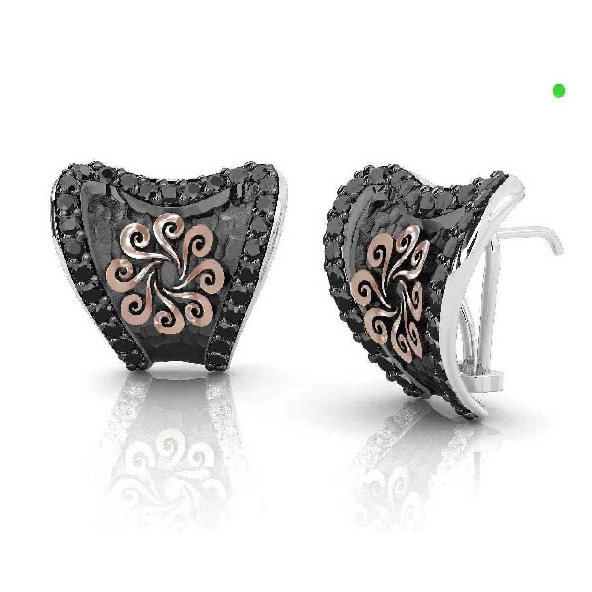 Arracades Bohemme en plata i or rosa, amb espinel·les negres que aporten un toc elegant i modern. Perfectes per a qualsevol ocasió especial.