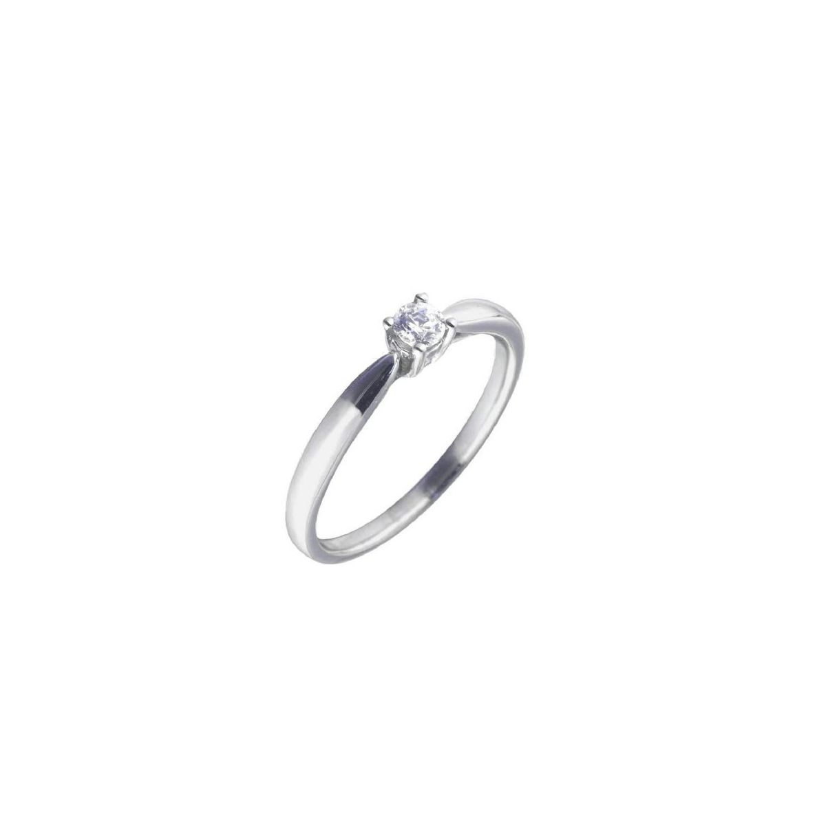 Anell solitari en or blanc de 18k amb diamant de 0,11 ct. Un disseny delicat i lluminós, ideal per celebrar l’amor.