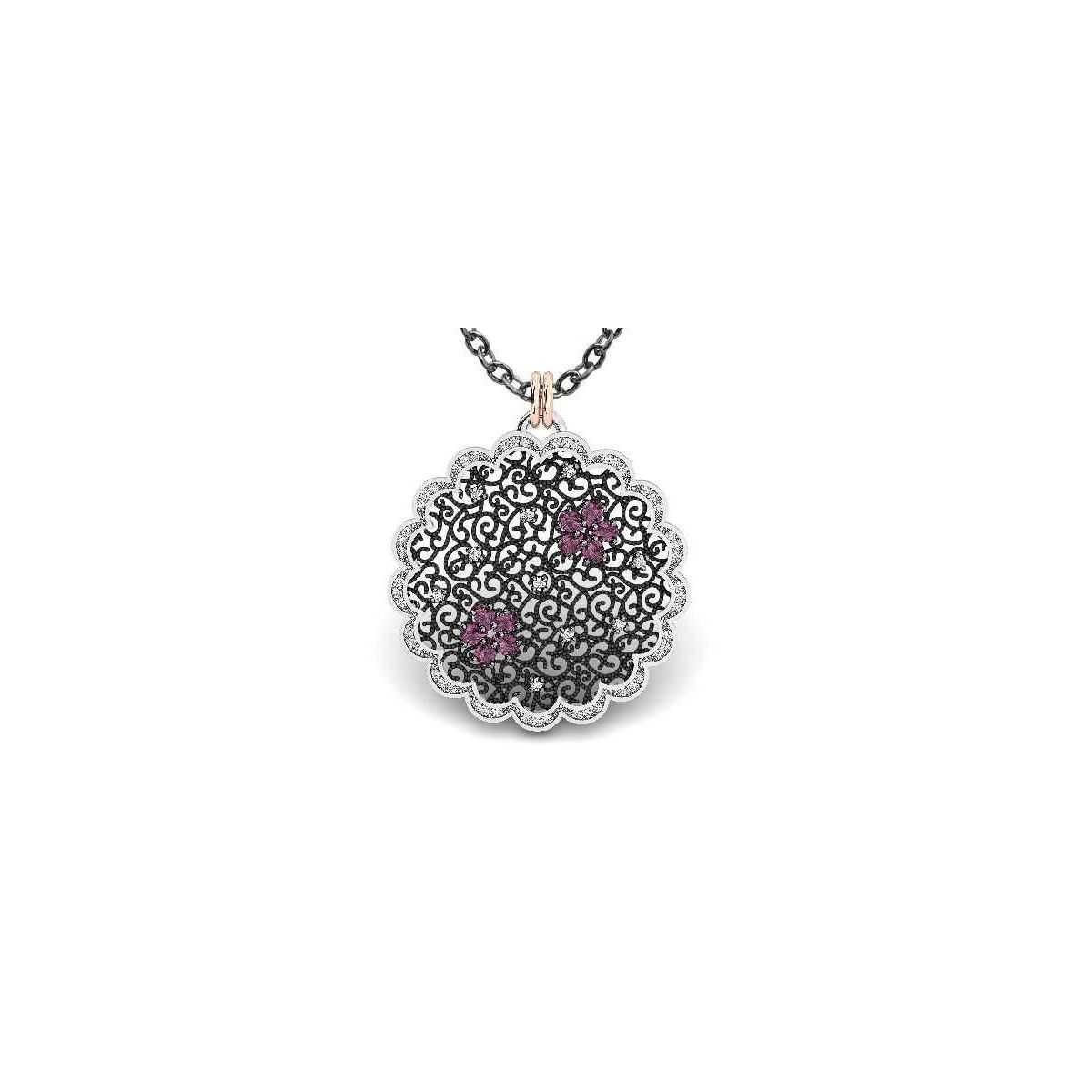 COLGANTE DE PLATA Y ORO ROSA CON RODOLITA Y DIAMANTES - 5FLG001P60