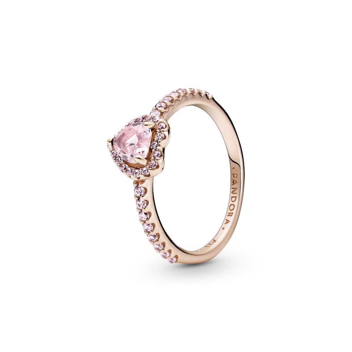 Anillo con un recubrimiento electrolítico en oro rosa de segunda ley de 14k Corazón Brillante Elevado adornado con un cristal rosa en forma de corazón y circonitas cúbicas transparentes