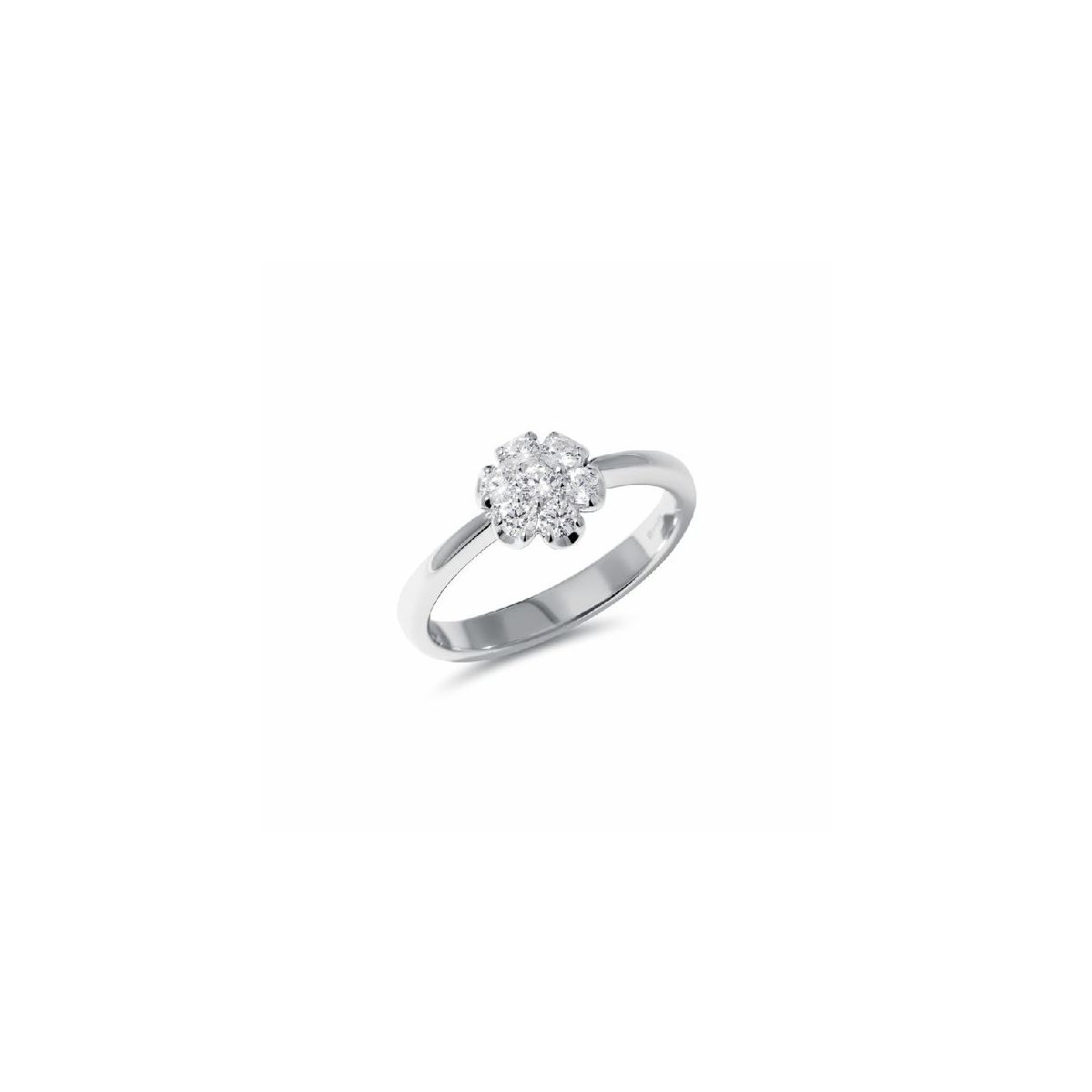 Anillo de oro blanco con rosetón de brillantes (0.34 ct). Diseño elegante y sofisticado que destaca por su brillo excepcional.