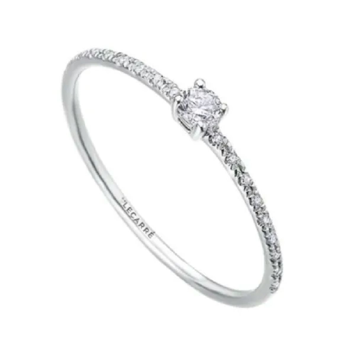 Elegante anillo realizado en oro blanco de 18 quilates, engastado con brillantes que aportan un brillo delicado y sofisticado. Una pieza clásica que combina pureza y distinción para realzar cualquier estilo.