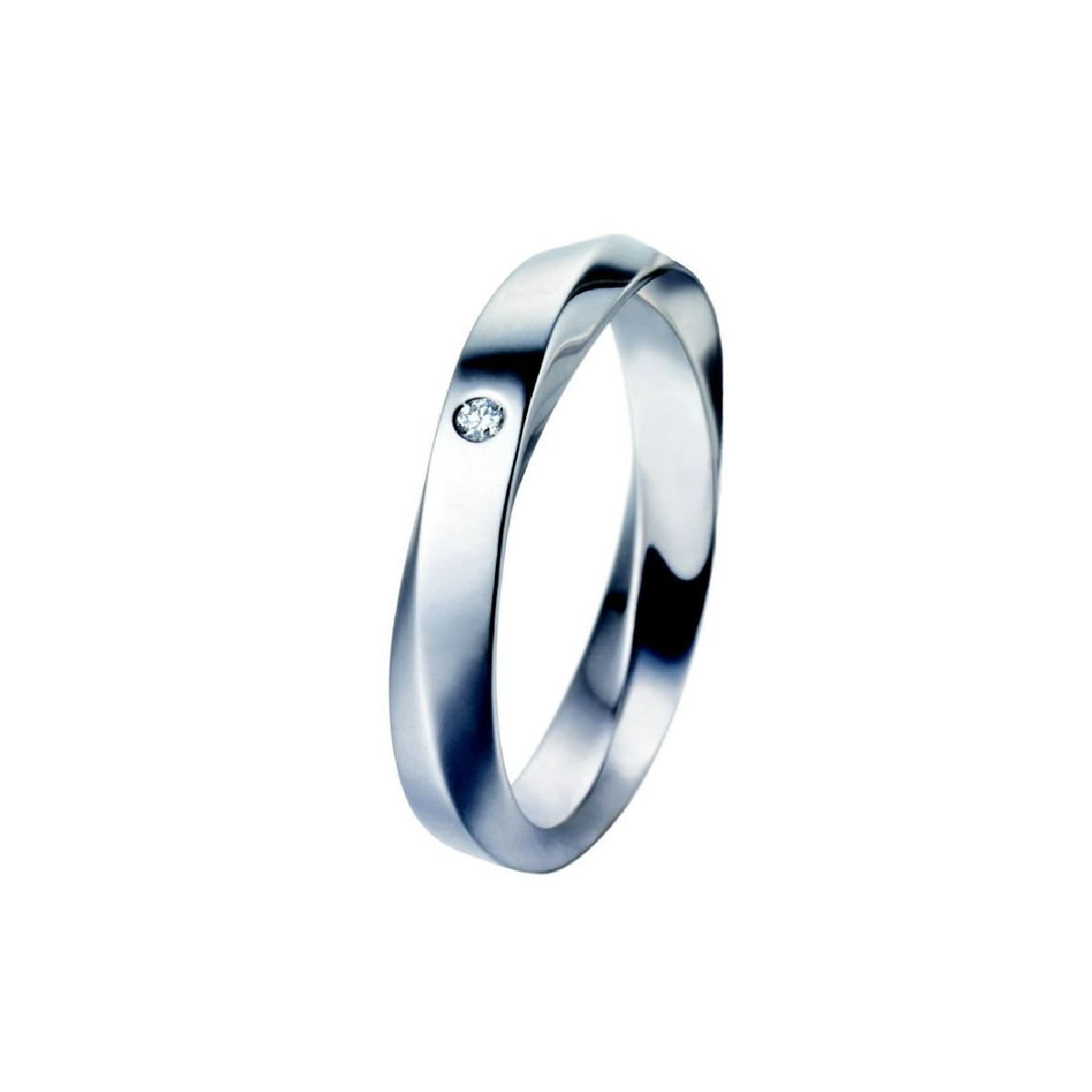 Alianza Polello, hecha a mano en oro blanco de 18kt, de 3,8mm de ancho retorcido. Acabado pulido brillante. Con 3 diamante en total de 0,03qts