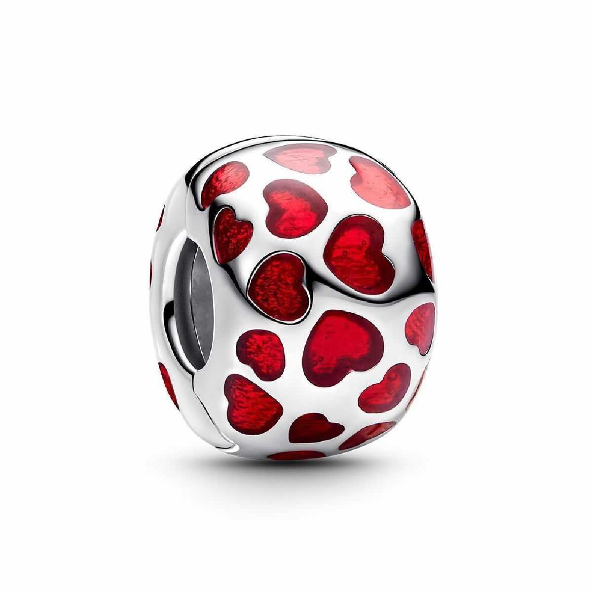 Hearts Round Clip Charm de Clip en plata de primera ley Redondo Corazones adornado con esmalte rojo transparente