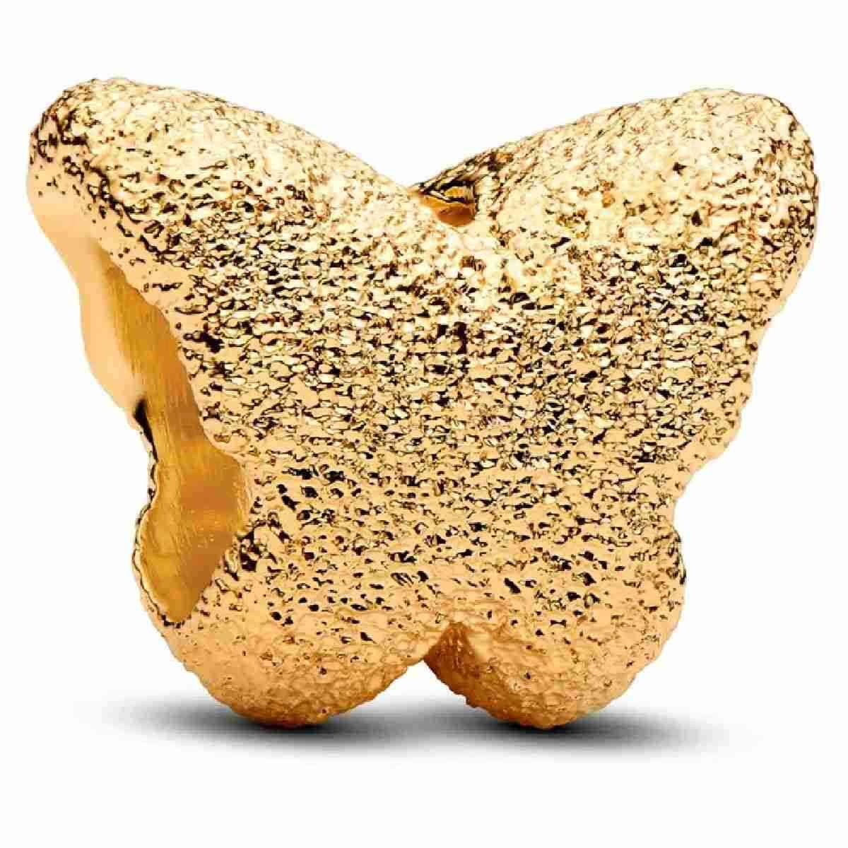 Exprésate con Pandora Minis. Este charm de mariposa en oro de 14k es pequeño, pero lleno de significado. Su delicada textura de punta de diamante le da un toque especial, listo para convertirse en el protagonista de tu colección.