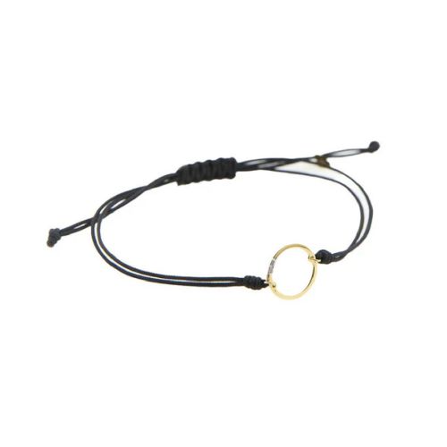 PULSERA ORO CON CÍRCULO Y CORDÓN DE NAILON NEGRO - PO 074918