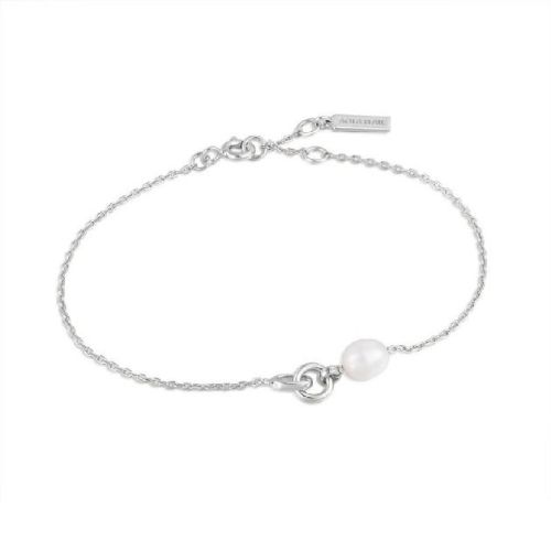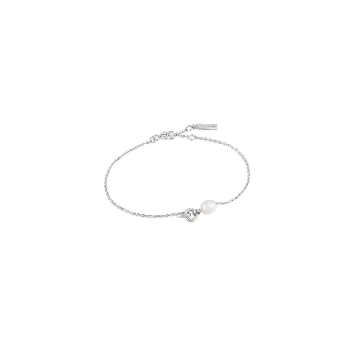 Pulsera de plata con eslabones y perla, diseño moderno y elegante para cualquier ocasión.