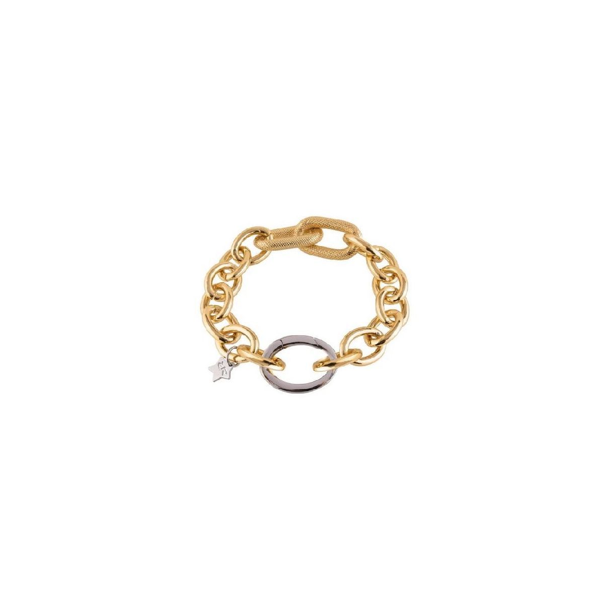 Esta pulsera forma parte de la colección Diva de Rebecca, reconocida por su estilo contemporáneo y sofisticado. Está elaborada en una aleación ligera chapada en oro de 24 quilates, lo que le confiere un acabado brillante y elegante. Su diseño destaca por una cadena de eslabones con doble textura, combinando eslabones lisos y otros con detalles grabados, creando un contraste visual atractivo. La longitud de la pulsera es de aproximadamente 22,5 cm, con cierre de mosquetón para un ajuste seguro.