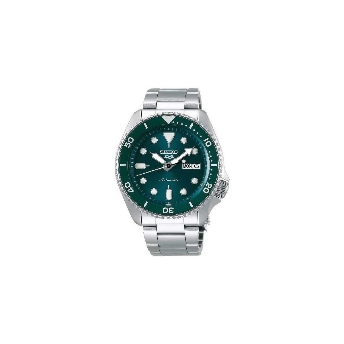 El Seiko 5 Sports es un reloj automático masculino de 42,5 mm con caja de acero y bisel giratorio unidireccional verde.