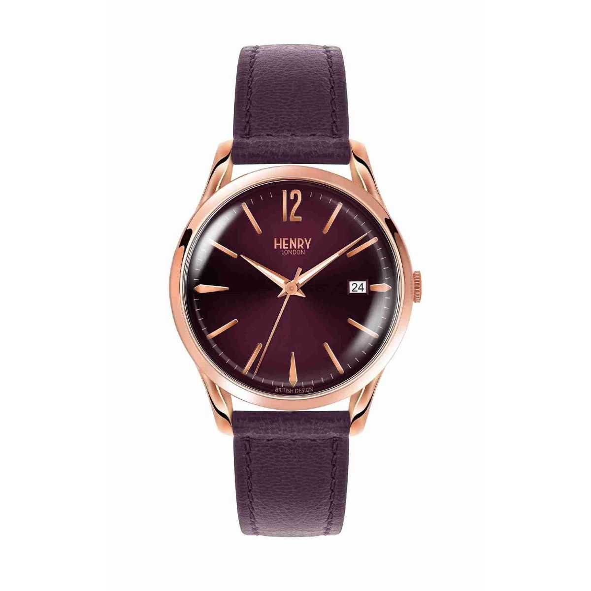 El Henry London Hampstead HL39-S-0080 es un reloj unisex que fusiona el estilo vintage con la modernidad. Su esfera morada con acabado sunray y detalles en oro rosa le confiere un toque sofisticado y elegante. La caja de acero inoxidable de 39 mm y la correa de piel morada aseguran comodidad y durabilidad, adaptándose perfectamente a muñecas de tamaño medio.